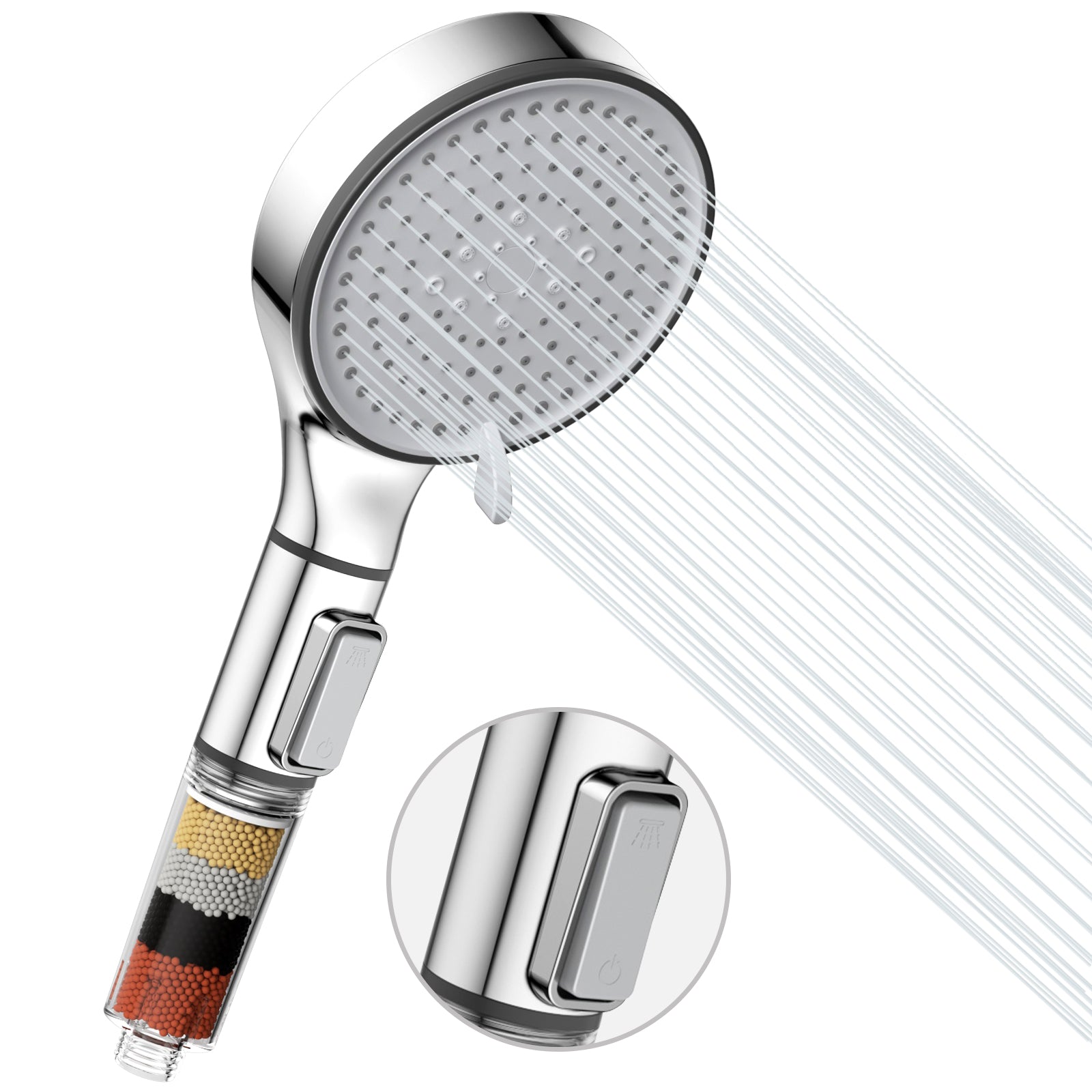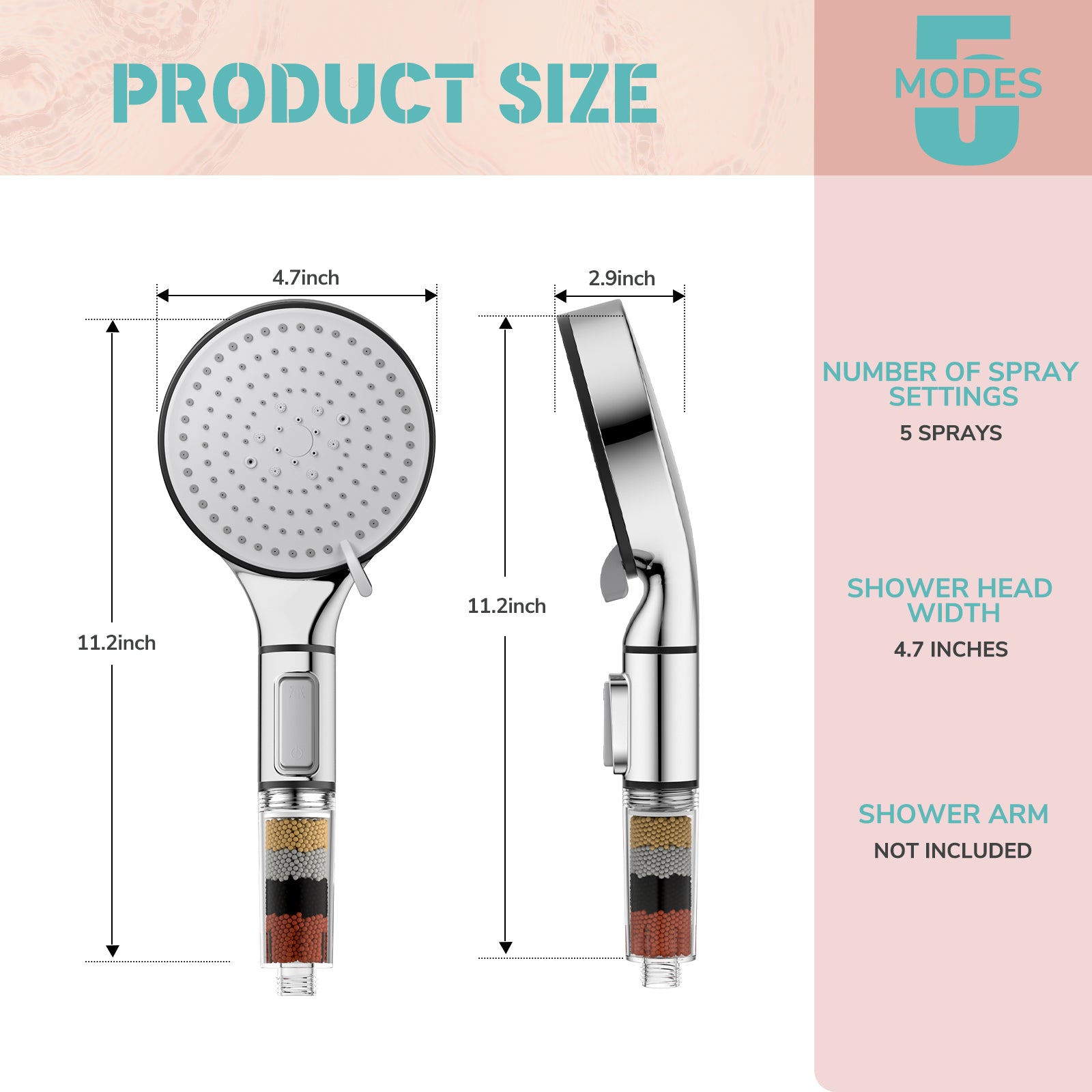 KINGTACK Shower Head with Handheld, 5 Spray Mode High Pressure Handheld Shower Heads, Remove Chlorine - Reduces Dry Itchy Skin, Chrome