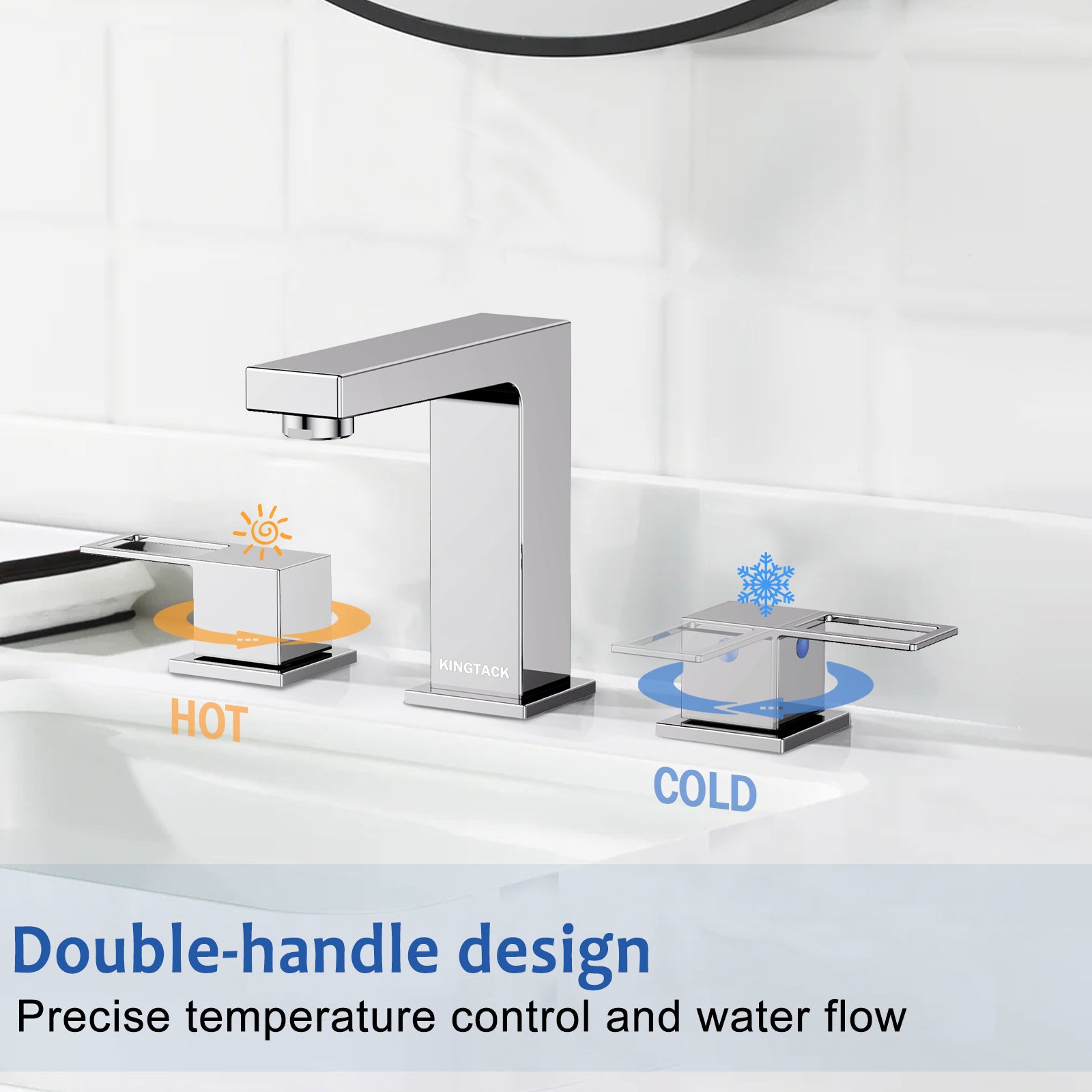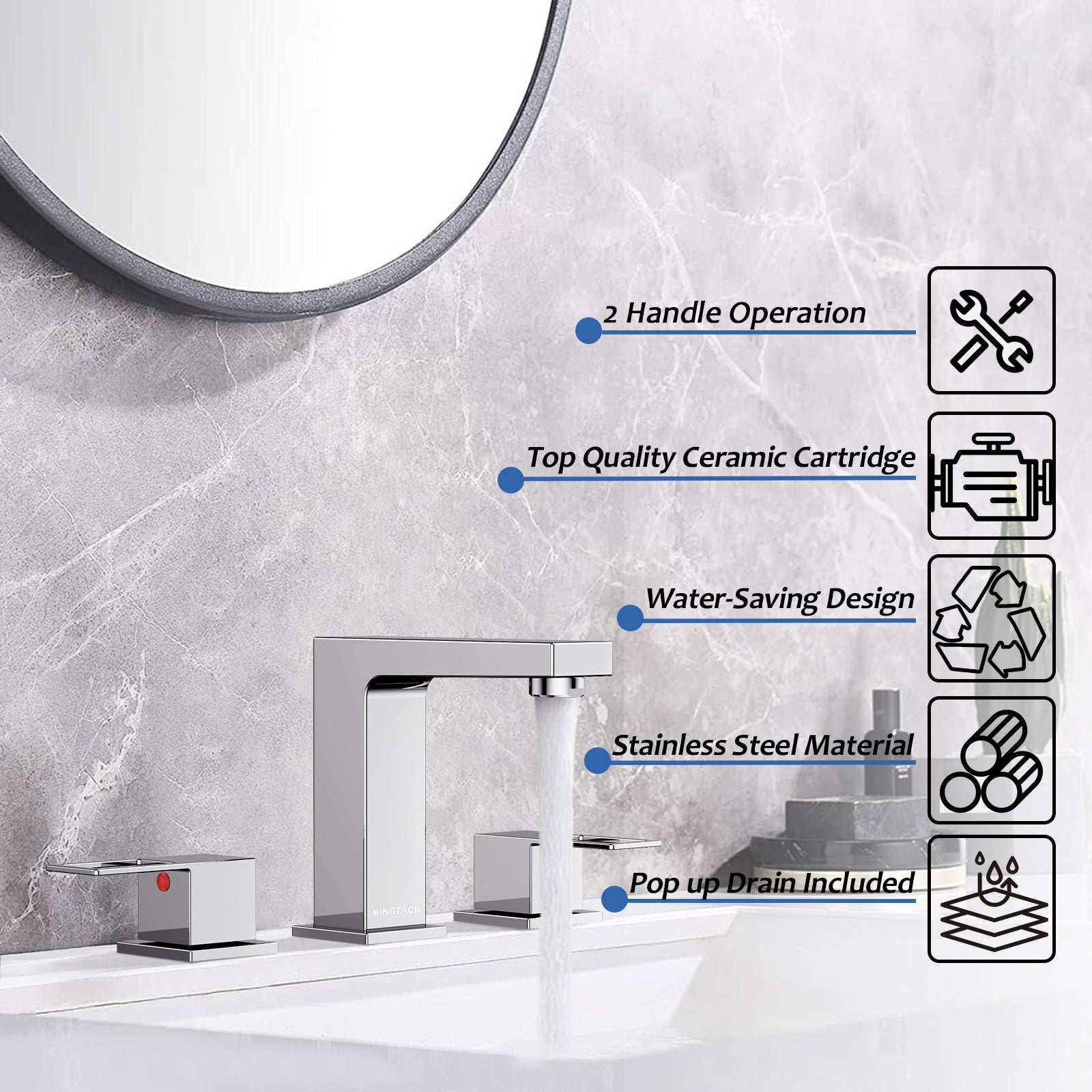 KINGTACK Bathroom Faucets for Sink 3 Hole, 8 inch Chrome Bathroom Sink Faucet with Pop Up Drain, 2 Handle Vanity Faucet with Water Supply Hoses
